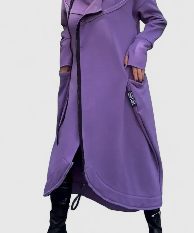 Zita | Hosszú kabát kapucnival cipzárral