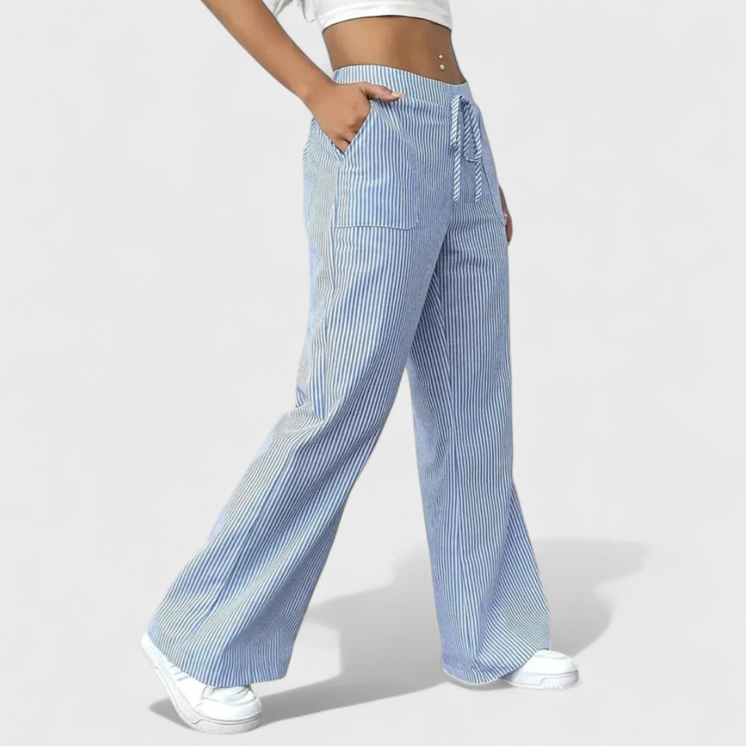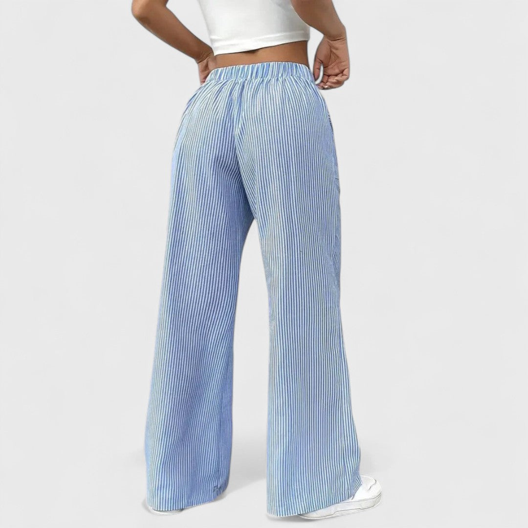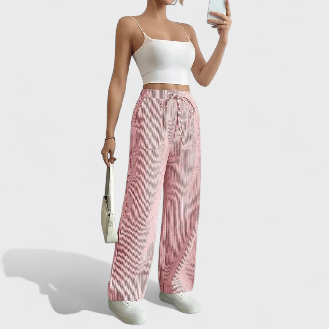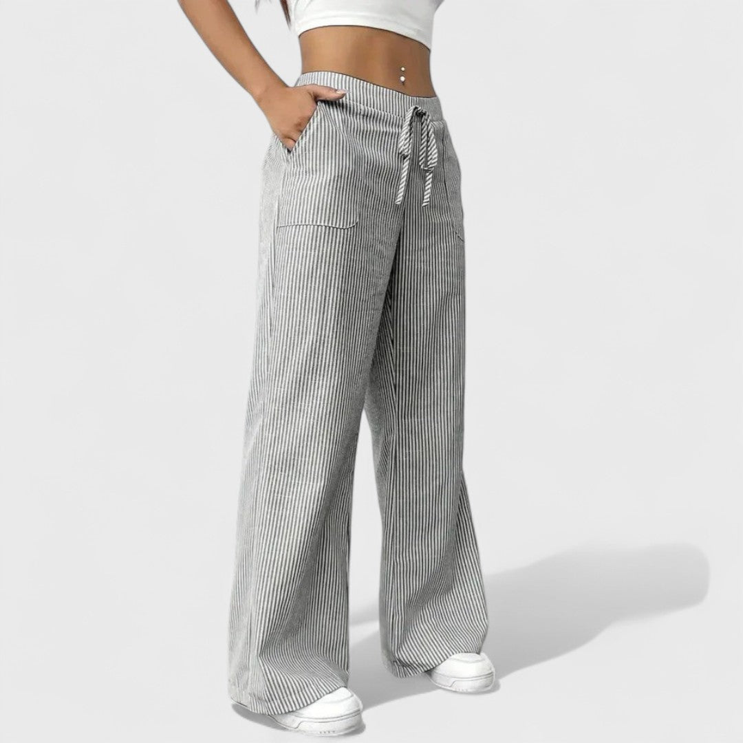 A Dominik nadrágok tökéletes kombinációja a modern szabásnak és az időtlen eleganciának. A laza, széles szárak és a magas derék diszkrét kiemelésekkel és övvel nőies sziluettet alkotnak, amely nemcsak stílusos, hanem hihetetlenül kényelmes is. Könnyű, légáteresztő anyagból készültek, így ideális választás bármilyen alkalomra – az irodától az esti szórakozásig.
